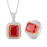 Be the first to review “The color gemstone cutting technology is popular, with high carbon content, and the main component carbon element is the same as that of real diamonds. Highly simulated diamond Redion cutting, ice flower cutting, copper inlay, temperament set, main stone 10 * 12” Cancel reply