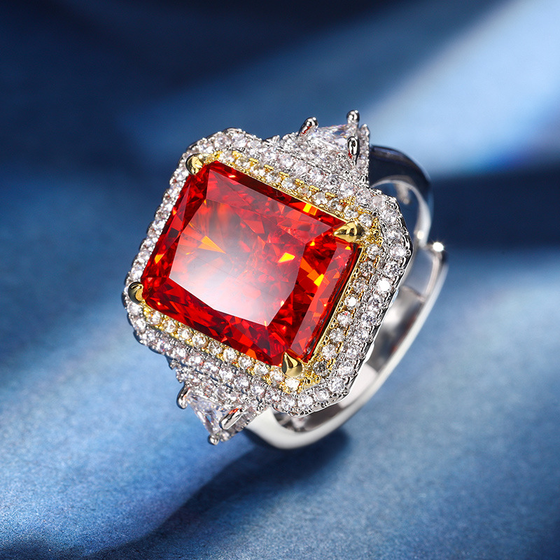 Home Ring The color gemstone cutting technology is popular, with high carbon content, and the main component carbon element is the same as that of real diamonds. Highly simulated diamond Redion cutting, ice flower cutting, copper inlay, temperament set, main stone 10 * 12