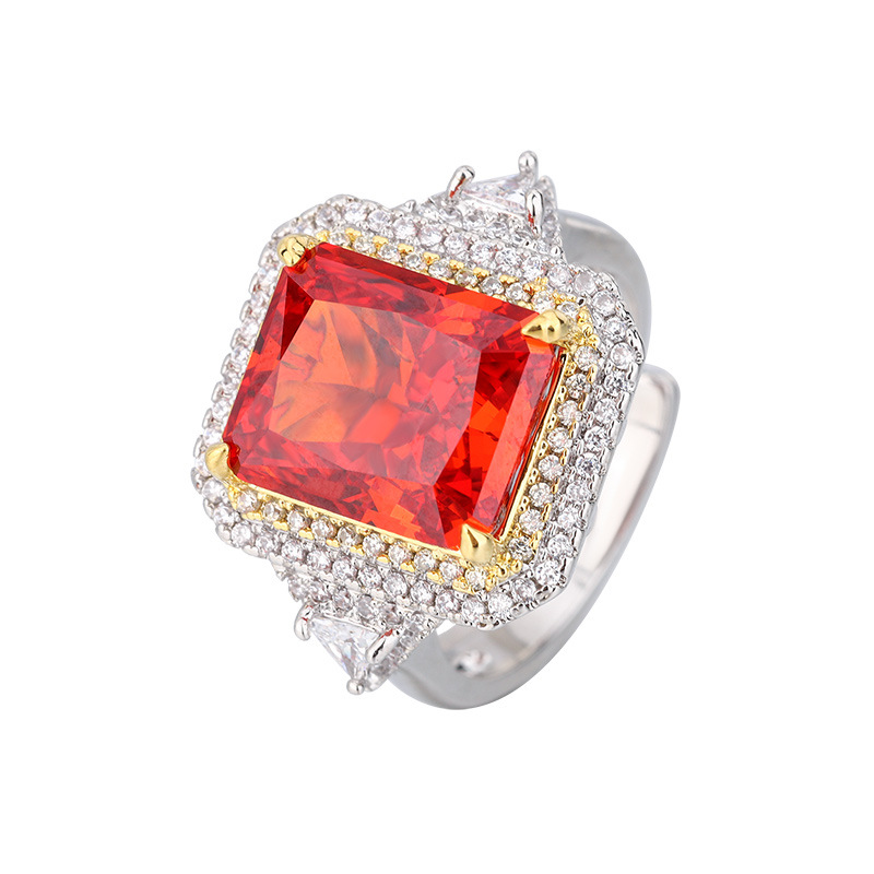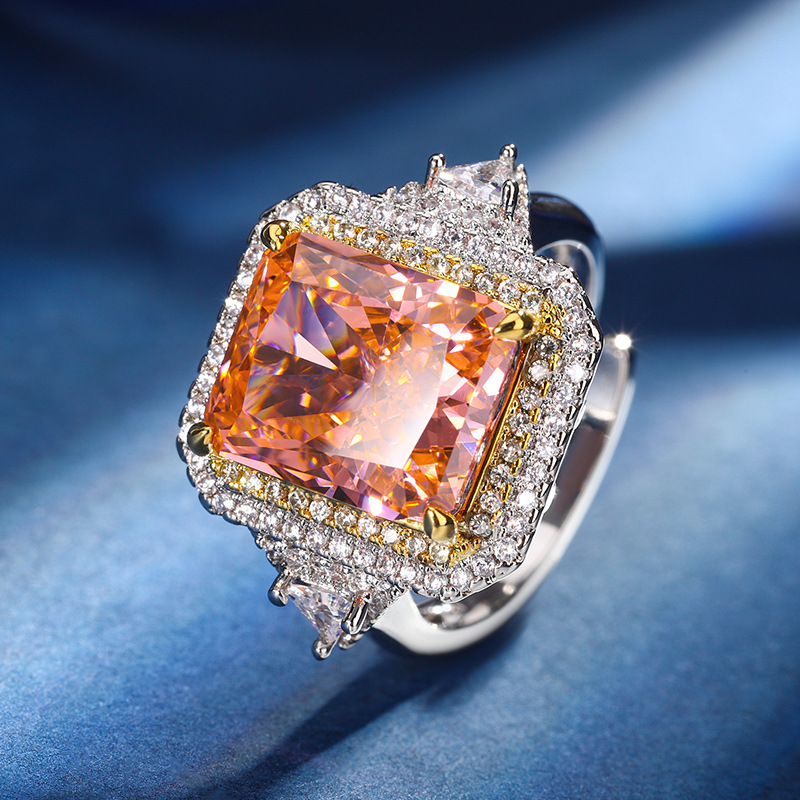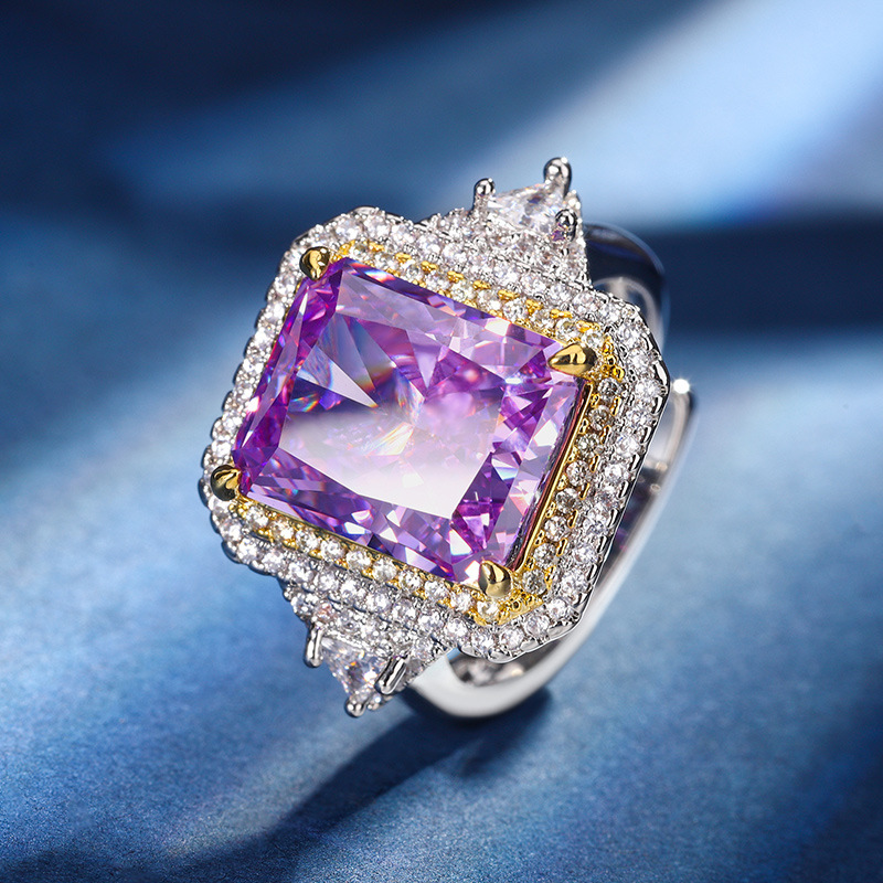 The color gemstone cutting technology is popular, with high carbon content, and the main component carbon element is the same as that of real diamonds. Highly simulated diamond Redion cut ice flower copper inlaid temperament square diamond ring for women, size 10 * 14
