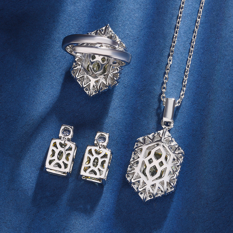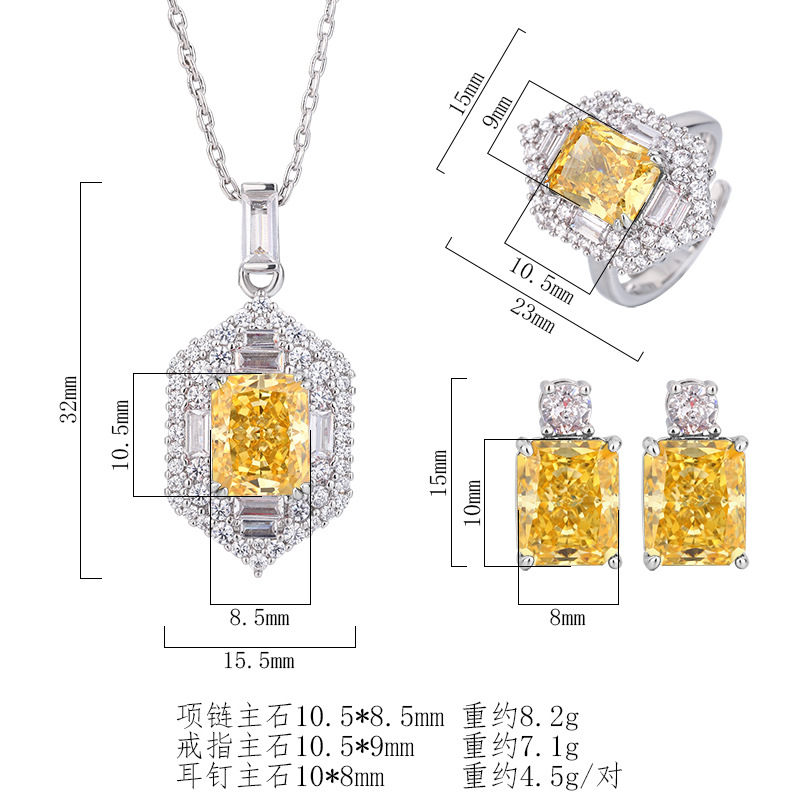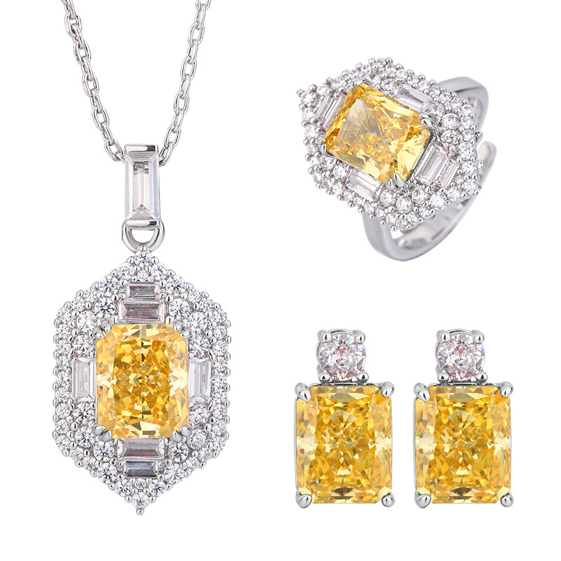 Ice Flower Cut Yellow Diamond Pendant with Chain, Ice Flower Cut Yellow Diamond Ring, Ice flower cut yellow diamond earrings |