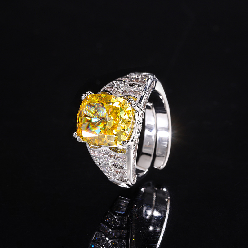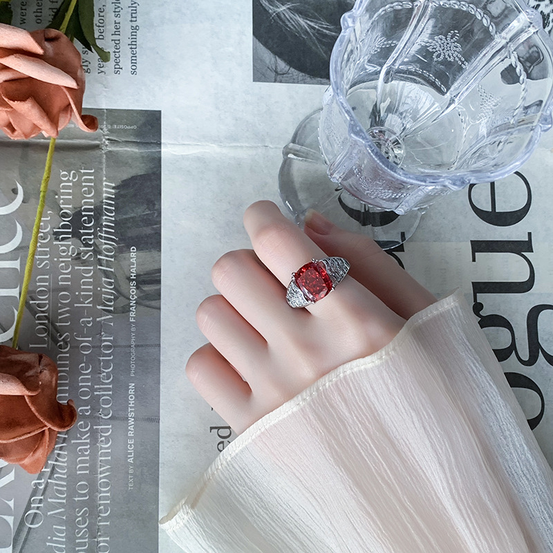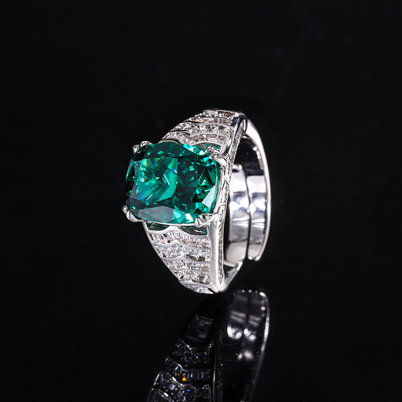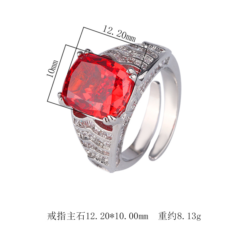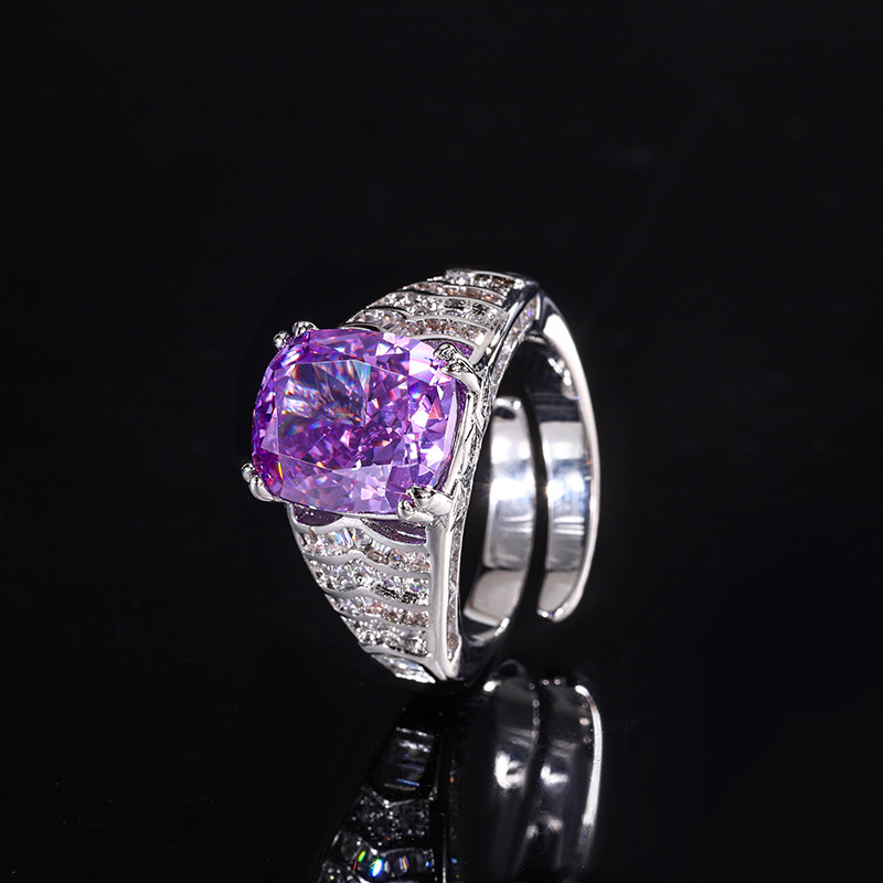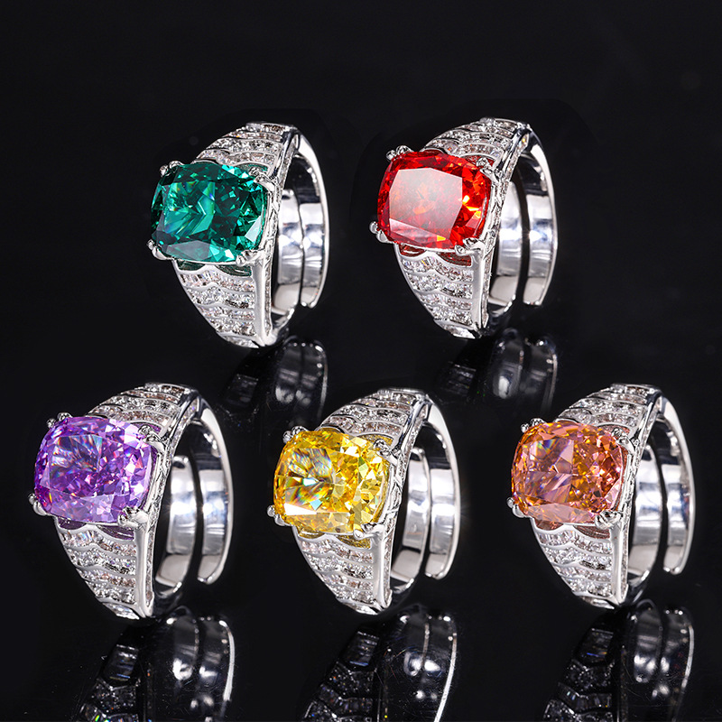 Home Ring The color gemstone cutting technology is popular, with high carbon content, and the main component carbon element is the same as that of real diamonds. Highly simulated diamond Redion cutting ice flower cutting fat square copper inlaid temperament ring 10 * 12