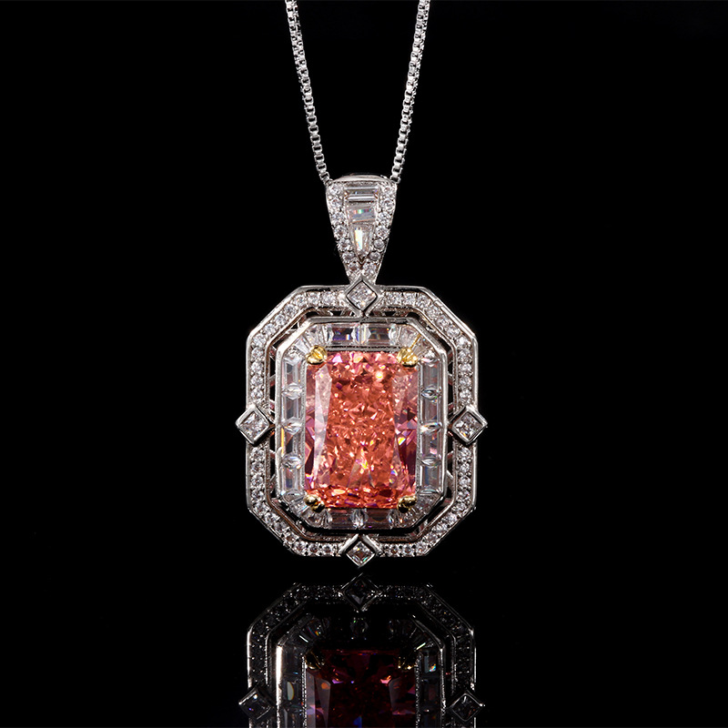 Ice flower cut emerald pendant with chain, Ice Flower Cut Papalacha Pendant with Chain, Ice Flower Cut Yellow Diamond Pendant with Chain, Ice Flower Cut Chinese Red Pendant with Chain |
