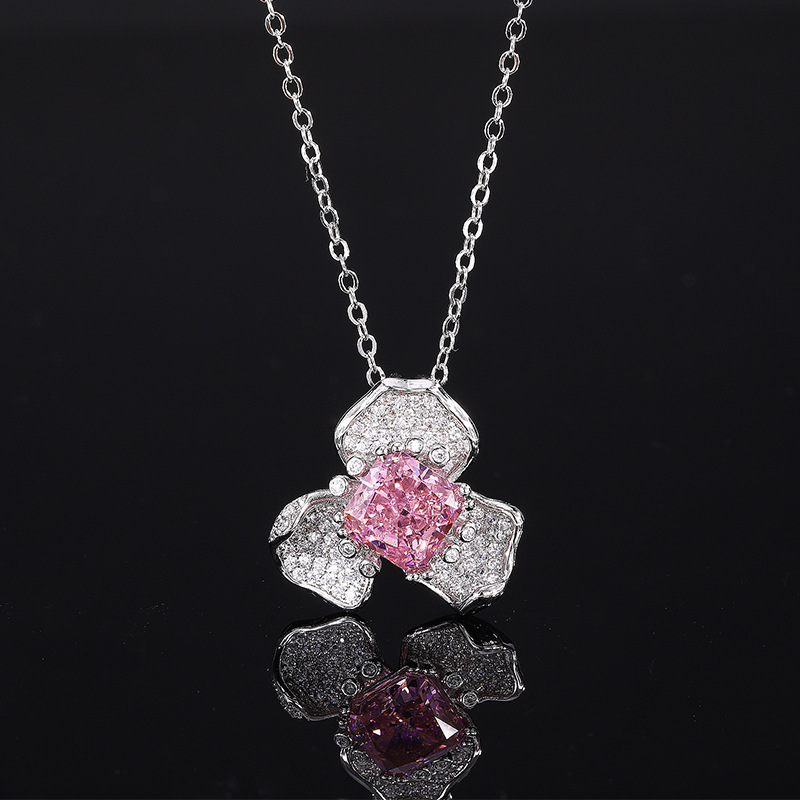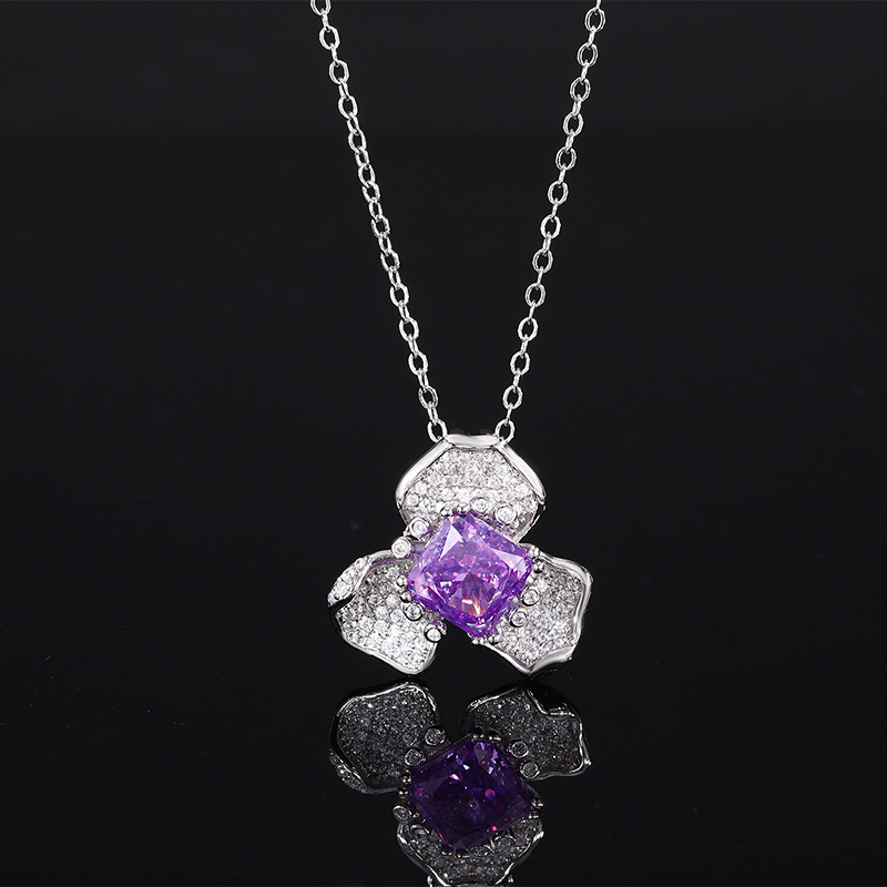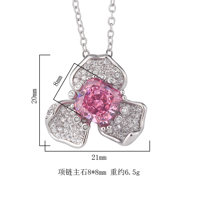 The cutting technology of colored gemstones is popular, with high carbon content, and the main component carbon element is the same as that of real diamonds. Highly simulated diamond Redion cut premium texture ice flower cut copper inlaid petals light luxury pendant female lead stone 8 * 8