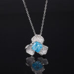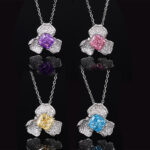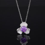 Ice Flower Cut Deep Pink Pendant with Chain, Ice Flower Cut Yellow Diamond Pendant with Chain, Ice flower cut purple diamond pendant with chain, Ice Flower Cut Sea Blue Treasure Pendant with Chain