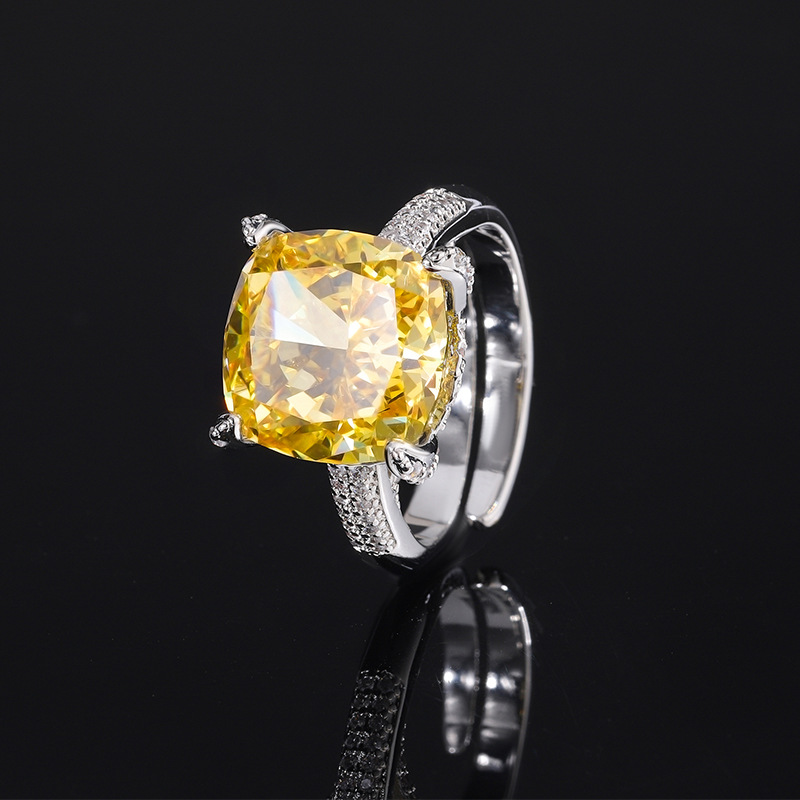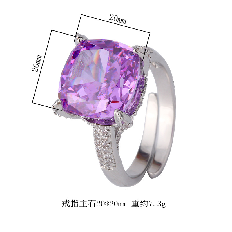 Home Ring The cutting technology of colored gemstones is popular, with high carbon content, and the main component carbon element is the same as that of real diamonds. Highly simulated diamond Redion cut with premium texture, diamond copper inlaid with simple princess square ring for women, size 12 * 12