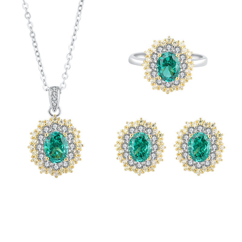 Emerald pendant with cross chain, Emerald earrings, Emerald Ring No. 5, Emerald Ring No. 6, Emerald Ring No. 7, Emerald Ring No. 8, Emerald Ring No. 9 |
