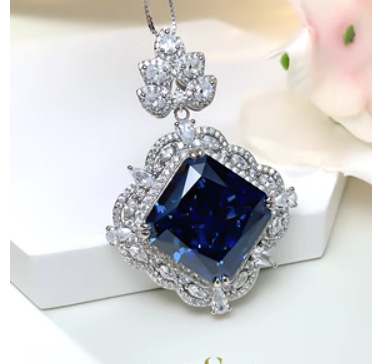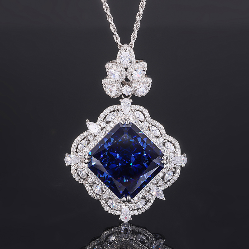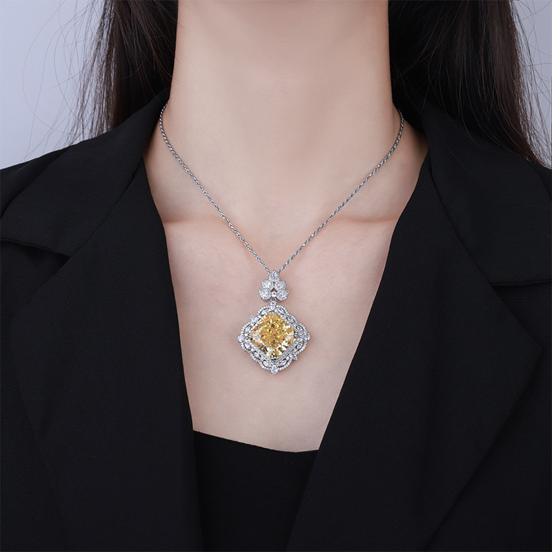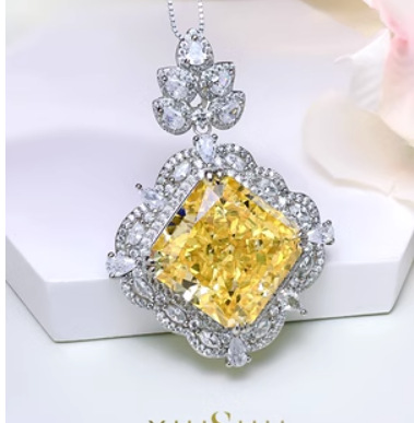 Royal Blue Pendant with Box Chain, Yellow diamond pendant with box chain, Royal blue pendant with Fried Dough Twists chain, Yellow diamond pendant with Fried Dough Twists chain |