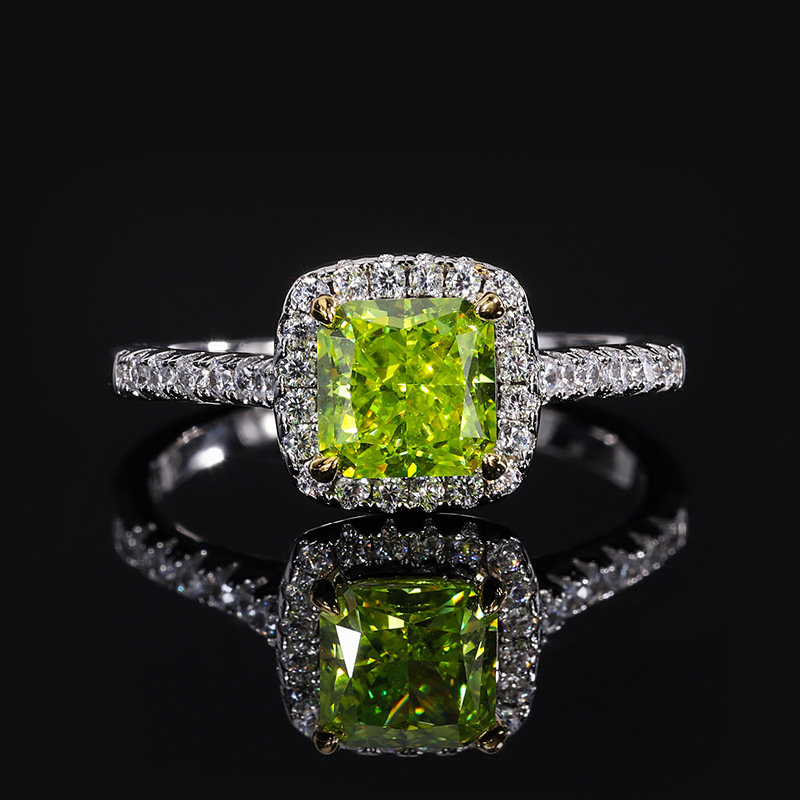 Home Ring The top cutting technology of S925 Caibao is a best-selling product with high carbon content, and its main component carbon element is the same as that of real diamond. Highly simulated diamond Redion cut olive green square diamond temperament light luxury ring female lead stone 6 * 6