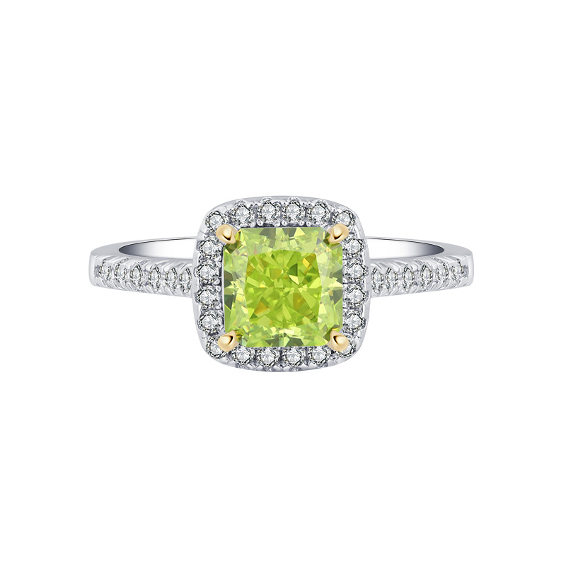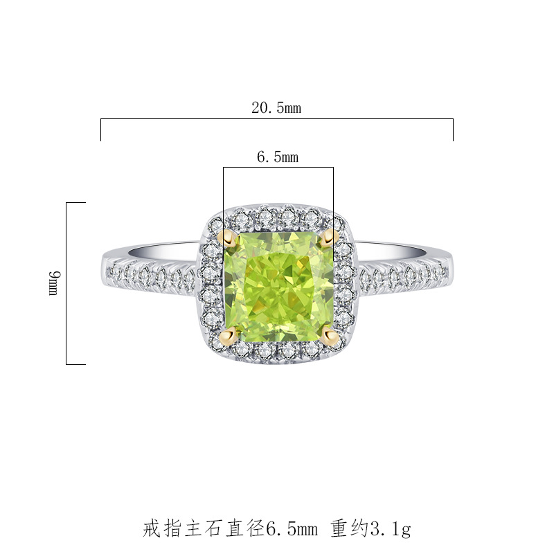 Home Ring The top cutting technology of S925 Caibao is a best-selling product with high carbon content, and its main component carbon element is the same as that of real diamond. Highly simulated diamond Redion cut olive green square diamond temperament light luxury ring female lead stone 6 * 6