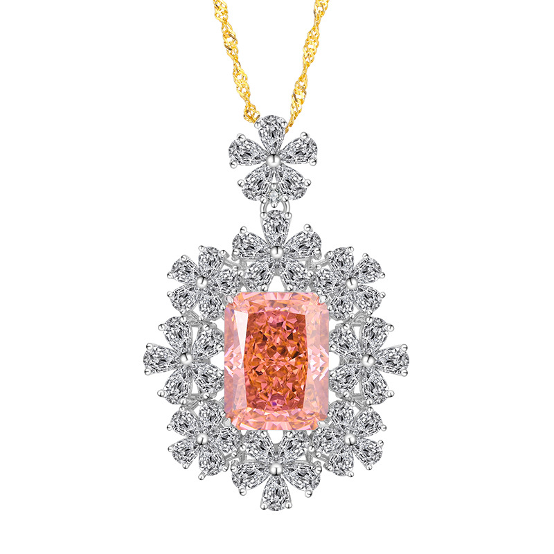 The top cutting technology of S925 Caibao is a best-selling product with high carbon content, and its main component carbon element is the same as that of real diamond. Highly simulated diamond Redion cut Papalacha flower shaped creative set, main stone 12 * 16 8 * 10