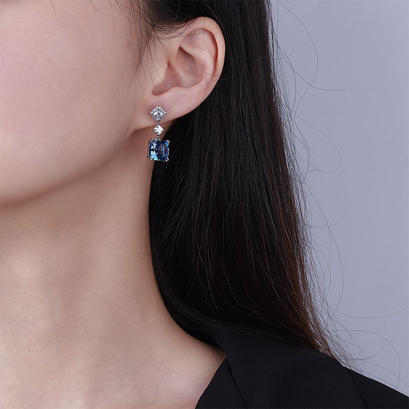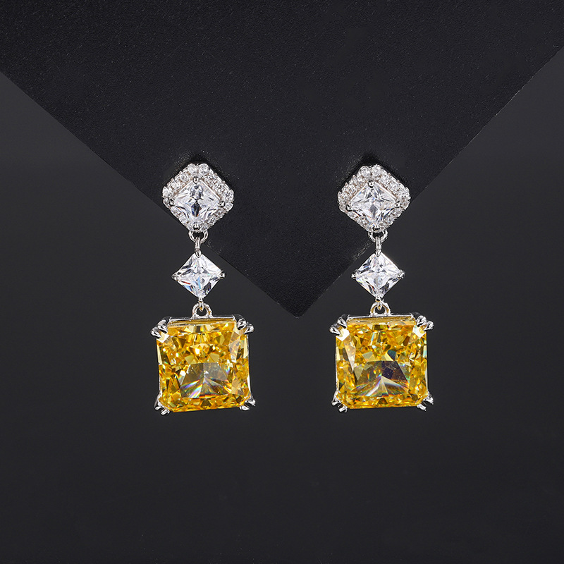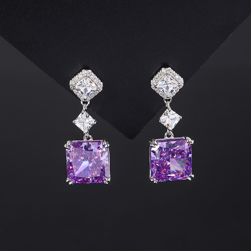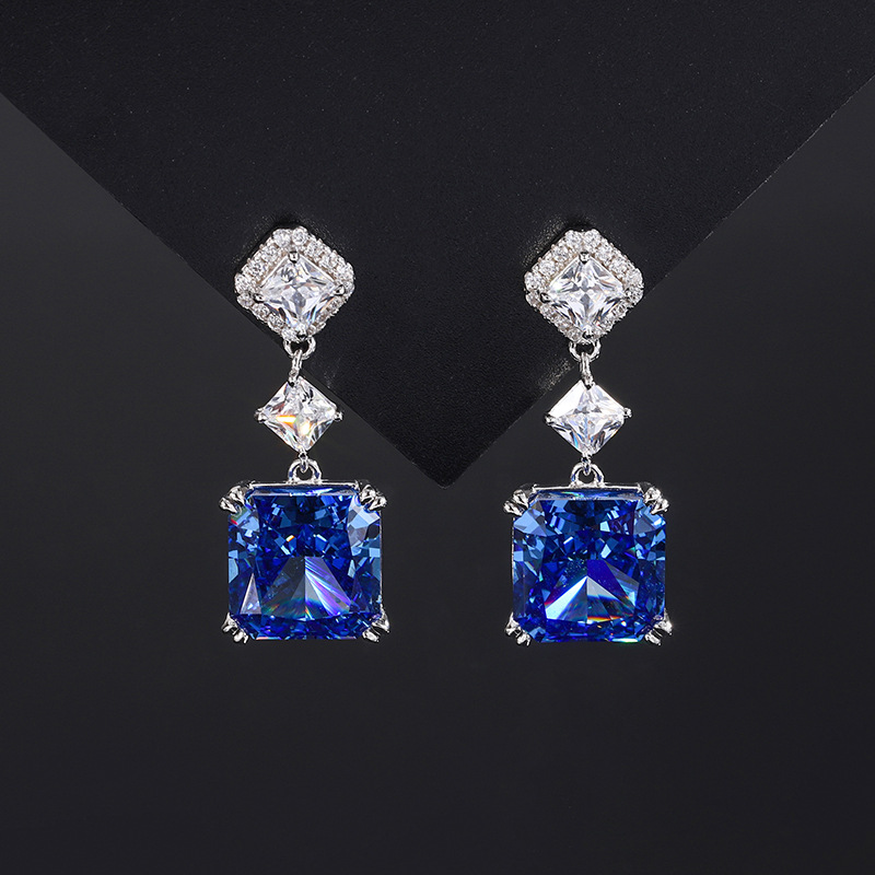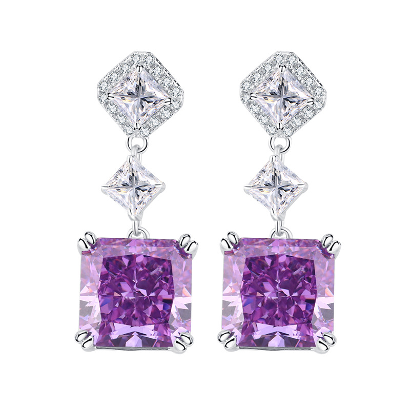 The top cutting technology of S925 Caibao is a best-selling product with high carbon content, and its main component carbon element is the same as that of real diamond. Highly Simulated Diamond Redion Cut Color Treasure Princess Fang Advanced Earnail Earrings Female 10 * 10