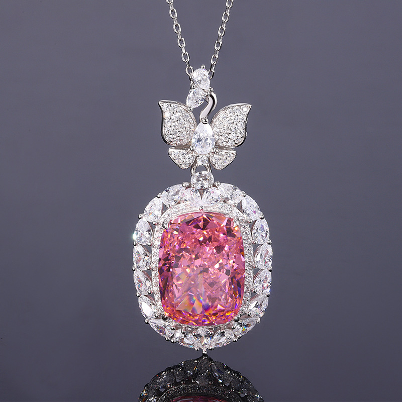 The top cutting technology of S925 Caibao is a best-selling product with high carbon content, and its main component carbon element is the same as that of real diamond. Highly simulated diamond Redion cut butterfly fat square pendant with luxurious setting of 15 * 20