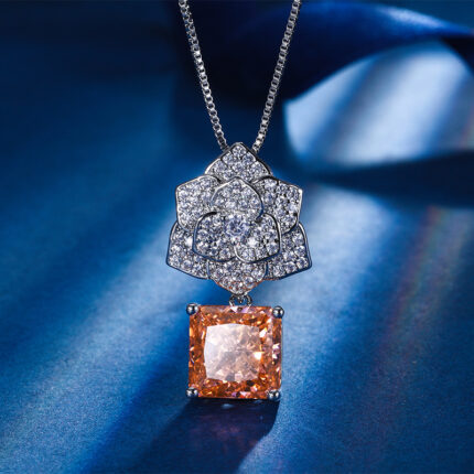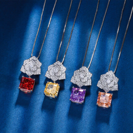 Caibao’s top-notch cutting technology is a best-selling product with high carbon content, and its main component carbon element is the same as that of real diamond. Highly simulated diamond Redion cut jewelry set, high carbon diamond ice flower cut copper petal pendant, main stone 10 * 10