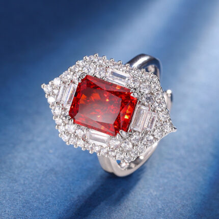 Caibao’s top-notch cutting technology is a best-selling product with high carbon content, and its main component carbon element is the same as that of real diamond. Highly simulated diamond Redion cut ice flower cut copper set with Chinese red main stone 8 * 10