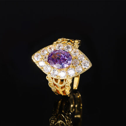 The color gemstone cutting technology is popular, with high carbon content, and the main component carbon element is the same as that of real diamonds. Highly simulated diamond Redion cut copper base gold-plated simulation corundum ice flower cut temperament egg shaped finger ring for women 7 * 9