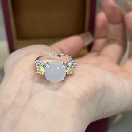 中古风轻奢撞色镶嵌白绿高冰玉髓蛋面满钻戒指百搭国潮新中式指环